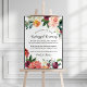 Elegant välkomstskylt för bröllop uppmanar gästerna att stänga av sina telefoner under ceremonin. Designen har en rustik sommar- och höstblommig akvarellkrans med vackra rosor, dahlior, peonblommor och grönska, i en magnifik höstpalett med burgunderrött, gyllengult, persikoransje, rosafärgat och olika nyanser av grönt.