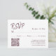 Denna minimalistiska men tidlösa design är det perfekta komplementet till din bröllopsinbjudan, håller dina gästers svar organiserade och dina bröllopsdetaljer tydliga. Det högkvalitativa kartongen ger en lyxig känsla, medan det skarpa trycket får varje detalj att sticka ut. Kombinera den med våra matchande burgunder röda bröllopsinbjudningar, detaljerade kort och meny kort för att skapa en sammanhängande, oförglömlig bröllops brevpapper.