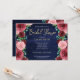 Rustic Burgundy Blommigt Watercolor Möhippa. Vackert burgundi ro, eukalyptus löv och grönt med marin blå bakgrund. Perfekt för ett Fall-/vinterbröllop. Du kan anpassa genom att välja "Anpassa den här mallen" eller om du vill anpassa designen ytterligare väljer du "Redigera med Design verktyg".