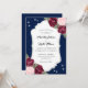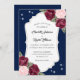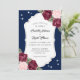 Elegant Rustic navy blue, burgundy och bröllopsinbjudning med burgundy och rosa ros på en marin blå bakgrund. Utformning av perfekt för att bjuda in gästerna till din marinblå, burgundära och , roliga bröllopsfest. Matchande objekt är tillgängliga.