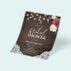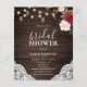 Inbjudningskort för möhippan har botaniskt burgundi och blommor och ljus på rustiskt trä.