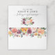 Ett dramatiskt bröllopskort med rika burgundy- och mjuka rosenskiftande akvarellblommor med höstgrönska på en djup, dyster bakgrund. Paret namn och bröllopsdatum visas i elegant kalligrafi monogramstil på baksidan. Ett fantastiskt val för höst- och vintersammankomster. Kort kommer förtryckta, och gästnamn och bordstilldelningar fylls i för hand.
