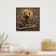 Rustik Carved Wood Bear Gräs Träd ställer in Sol Poster