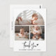Det här rustic chic tack-fotokortet för babyfirande är den perfekta kombinationen av elegans och värme, designat för att uttrycka din hjärtliga tacksamhet på ett verkligt speciellt sätt. Med tre anpassade foton av din lilla en, visar designen den första bilden högst upp inom en charmig bågeform, medan ytterligare två dyrbara foton sitter nedanför, alla vackert åtskilda av en tunn vit linje på en ren vit bakgrund. Under denna fantastiska kolla skriver ett modernt rustikt handskrivet manus graciöst ut “Tack”, följt av ditt barns namn och födelsedatum, vilket ger en personlig och sentimental touch. Baksidan av kortet erbjuder utrymme för ditt anpassade tack-meddelande, vilket gör det till en meningsfull souvenir för vänner och familj. Med sin tidlösa design och högkvalitativa tryck är detta tack-kort ett hjärtligt