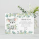 Koordinera ditt barns födelsedagsfest med den här chicen gienery koala födelsedagsfest tack för dina kort. Med rustiska vattenfärgseukalyptus löv och en söt baby koala. Anpassa den med dina egna ord enkelt och snabbt, tryck helt enkelt på anpassningsknappen för att ytterligare ordna om och formatera stil och placera texten. Kolla in matchande objekt för den här samlingen som är tillgängliga i butik!