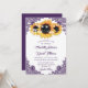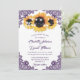 Elegantens lila, russinsolrossinbjudningar som är idealiska för lila, rustik land, trädgård, trädgård eller ladugård, bröllopsfest som inspirerats av solrosblommor. Matchningsartiklar som är tillgängliga för att komplettera dessa lila inbjudningar till bröllop på chic.