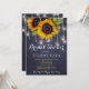 Inbjudan till snyggt i Rustic land möhippa party på mörken midnatt med blå bakgrund i den blå kritan med stora solblommor i gult, bouquets och strängar av vitt skinklubat stil. +++++++++++++Personanpassa med dina uppgifter! Du kan välja att anpassa det ytterligare genom att ändra typsnitt och färg på text. +++++++++++ Inbjudan är lämplig för sommar- eller höstfallande utomhusträdgård/trädgårdshårdar vid rustiska land-möhippor / brunch /luncheon party.