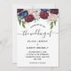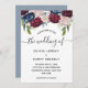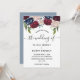 Eleganta chic vattenfärg blommiga bröllopsinbjudningar med vackra rustika lantliga blommor i rosablommig rosa, burgunder och marinblå. Baksidan av kortet är i modern dammig blå. Lägg enkelt till dina anpassade bröllopsdetaljer.