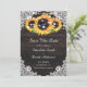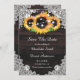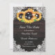 Rustiska solroskort från anpassningsbar bröllop spara datum med solblommor mot en rustisk träbakgrund, försedd med strängen ljus och vit blommigt snöre. Våra solroskort bröllop spara datum är perfekt för en rustik land eller lada-bröllopsfest som inspirerats av solrosblommor.