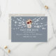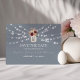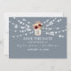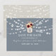 Meddela din stora dag med charmig rustik stil med detta dammiga blåa "spara datum"-kort med lysande strängljus, en monogramlagd masonkruka och burgunderröda höstblommor. En mjuk lantlig känsla möter elegant typografi för det perfekta första intrycket. Anpassa enkelt namnen och bröllopsdatum.