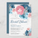 Rustik dammig blå rosa blomsterros bröllopsdusch inbjudningar
