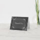 Trendiga bröllop tack-kort med utseende av svart tavla, designade för att se ut som en gammaldags svart tavla. Grafik med en vit dekorativ rullningskant och ljusgrå dekorationer pryder framsidan av kortet. Vit text på framsidan lyder, Tack. Anpassa all text för att passa dina bröllopsbehov. Matchande bröllopsprodukter finns tillgängliga. Elegant sätt att skicka tack efter bröllopet.