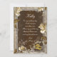 Rustik brun bakgrund med vita rosor och gyllene vigselringar. Varje bruds perfekta dag inkluderar hennes vänner. Vem litar du på för att hålla tal och utföra uppgifter som att hjälpa dig välja brudtärnornas klänningar så att din bröllopsplan går utan problem? Om det är din ansvarstagande syster, kusin, systerdotter eller din bästa vän, är denna "Vill du vara min brudtärna" inbjudan ett roligt sätt att fråga. Personifiera kortet genom att ändra texten i fälten som tillhandahålls fram och bak. Du kan ändra typsnitt, storlek och färg, samt papperstyp och stil.