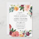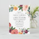Den här roustiska bröllopsinbjudan i stil innehåller en elegant formulering som är utformad av en sommarkrans och blommor med sjunkande vattenfärg, inklusive ro, dahlier, blommor och grönska, i en fantastisk höstpalett med burgundröd, gyllene gult, persikofärgad orange, rosa och skugga av grönt. Anpassa snyggtens mörk-grått-text för din speciella händelse. En brinnande röd bakgrund med texturerat utseende döljer kortets baksida.