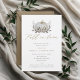Specialdesignad rustik elegant bröllopsinbjudan med akvarell vit pumpa och delikat höstgrönska i neutral färgton.