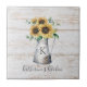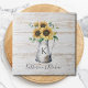 Tillsätt charm till ditt utrymme med denna rustika solrosplatta. Med en anpassad monogram och eukalyptus på en vit träplankabakgrund – perfekt för lantgårdsstil!