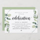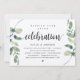 Modern Rustik Grönska Eukalyptus, Svart Skrift, Kraft tema inbjudningskort (med kort titel: Lyckligt firande efter). Det är perfekt för din bröllopsfest / efterbröllopsfest. Lägg till dina detaljer i matchande svart teckensnitt / bokstäver.