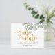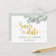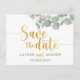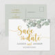 Rustik Eukalyptus Grön/Guld Bröllop Spara Datum Vykort