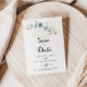 Rustik Eukalyptus Guld Blommig Kalligrafi Bröllop Spara Datumet