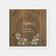 Dessa trendiga och stilrena servetter har en krans av gröna, akvarellmålade eukalyptusblad och en falsk guldgeometrisk ram på en brun, träliknande bakgrund. Du kan enkelt ändra texten, vilket gör detta perfekt för en baby shower eller bröllopsfest.