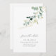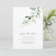Rustic save the date cards har vattencolor eukalyptus botanical grey och modern chic script och font, elegant och enkel, underbar för det moderna bröllop, botaniska trädgårdsälbröllop och boho-landsbyggsbröllop. Visa alla matchande delar i samlingen.