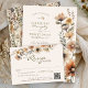 Personalisera denna unika och eleganta akvarell höstblomma allt-i-ett elfenbensfärgade höstbröllopsinbjudan med mjuka terrakotta-, kräm-, guld- och mjuka rosablommor och salvia grönt längs den högra sidan med enkel typsnittsstil på en mjuk krämfärgad elfenbensbakgrund på framsidan och ett vackert höstblommigt mönster på baksidan! Lägg enkelt till din text för att göra den unik! Beställ tryck + kuvert och/eller den omedelbara digitala filnedladdningen - perfekt för evites eller för att skriva ut hemma eller skicka till ditt valda tryckeri. Matchande QR-kod RSVP-kort finns tillgängligt i samlingen ovan! Anpassade designförfrågningar, produkt tillägg till samlingen och mallfrågor är alltid välkomna - klicka på "meddel