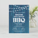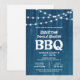 Den här inbjudan till familjeåterförening har en rustic blå bakgrund med accenter i form av ljusslingor.