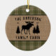 En vacker, rustik, tematisk keramisk prydnadsprodukt, med din familj namn och din hytt, stuga, stuga eller annan önskad text och dess fastställda datum. Anpassad design har en silhuett av en bull och gräs träd på ett stil-gaffel med spets, accentuerat med vackra Fransk land i mjuka skuggor av gräs och sage-grönt. Ett charmerande tillägg till ditt semesterhem, helgdag-dekanorn. Om du vill se fler design som denna kan du besöka min butik här på "Zazzle.com/Rustic_Charm". Tack.