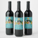 Rustik festlig fakta Solros Teal Trä Vinflaska Etikett