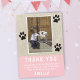 Rustik födelsedagsfotograf tack med tassavtryck i kort