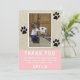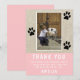 Rustik födelsedagsfototack-kort med tassavtryck i rosa. Sött födelsedagskort med svarta tassavtryck på rosa och beige rustik textur. Infoga ditt foto och anpassa med ditt namn.