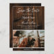 Skapa ett unikt tillkännagivande med detta Rustika Foto Spara Datum. Tillkännagivandet har en rustik trähybridbakgrund och plats för att lägga till ditt eget foto med en elegant textdesign. Ytterligare färger finns tillgängliga med denna design.