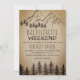 Sätt tonen för en oförglömlig stugsemester med denna rustika, naturinspirerade möhippsinbjudan. Med en charmig silhuett av tall och en majestätisk bergsutsikt på ett falskt kraftpapperdesign fångar den perfekt skönheten i naturen. Observera: Denna design härmar utseendet på kraftpapper men är tryckt på material av hög kvalitet.