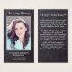 Rustic Chalkboard Sympathy Funeral Prayer Cards. Det här enkla minneskortet har en rustik kalkboard-design. "In Loving Memory" Anpassa det här minneskortet för begravning med dina nära foto, namn & data och känslor. Tillbaka ~ 'Efterglöd' Dikt, som kan vara personlig, var snäll och nå ut om du vill ha en design med en specifik dikt annan än. Det här minneskortet kommer att vara en välkänd keepé, för begravningstjänster och firande i livet. COPYRIGHT © 2020 Judy Burrows, Black Hund Art - Med alla Höger reserverade. Rustik, fyllig minnesbild - sympati Prayer-kort