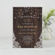 Rustik, vintage kortdesign med vintage spets, två rep-hjärten, strängljus gardin, vacker typsnitt, på en gammal lada. Använd verktyget Anpassa för att lägga till din information. För matchande artiklar besök min Rep Ram Samling.