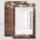 Med vackra strängljus och ömtåliga akvarellgröna blad på en rustik trädgårdshackgrund kan detta roliga bröllopsdusch te-partyspel anpassas med dina egna gissa vem-frågor. Designad av Thisisnotme©