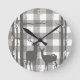 Rustik grå buffelrutiga rutor hjort & björk rund klocka
