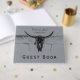 Rustik Grå Svart Western Ko Skalle Bröllop Gästböcker