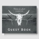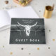 Denna rustika struktur grunge grå träkol vita tjur ko skalle country western cowboy bröllop mottagning minnessak gästbok har en vintage farmhouse inspirerad design. Trendig, gammal vild väst antik stil. Cool, modern gårdsdjur. Bild copyright Marg Seregelyi Photography.