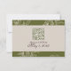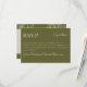 Modernt och funktionellt, det här olivgröna RSVP-bifogade kortet har en snygg design med minimalistisk typografi och en praktisk QR-kod för digitala svar. Den rika olivgröna nyansen ger en jordnära, elegant touch som passar perfekt med din neutrala bröllomspalett. Perfekt för par som söker ett strömlinjeformat och stilrent alternativ till traditionella svars kort, detta infogade kort ger modern sofistikation till din inbjudan.