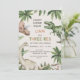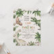 Söt pojke dinosaurie tema födelsedag tre rex födelsedagsinbjudan med tre dinosaurier och lite grönska.