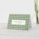 Rustik vikbar julkort med elegant design med redigerbar hälsning "God Jul" tillsammans med ditt/dina namn mot en vintageinspirerad gingham-mönstrad bakgrund.