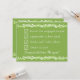 Anpassa dessa roliga "Will You Be My Groomsman"-inbjudningar för att matcha din Rustic Greenery-brölloppsserie. Designad med min handritade dubbla vin- och bladkonst och vita typsnitt i mixad stil på en solid vårgrön bakgrund, har framsidan en rolig checklista - baksidan utropar att mottagaren kvalificerat sig för att vara en groomsman. Lägg till personliga namn på raden GRATTIS på framsidan. På baksidan kan brölloppsfestens titelrad och brudgummens namn anpassas. Detta roliga platta kort kan enkelt konverteras till "Will You Be My Bridesmaid"-inbjudningar om du önskar. Bläddra i min butik för att se alla Rustic Greenery-bröllopsartiklar som samordnar med detta roliga grooms