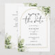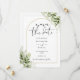 Denna eleganta botaniska grönska blad guld båge save the date inbjudan kan anpassas med din information i chic typografi med din bröllopswebbplats QR-kod och detaljer på baksidan. Designad av Thisisnotme©