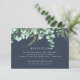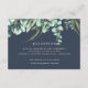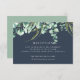 Våra Botaniska Eukalyptus-mottagningskort med tillhörande kuvert i marinblått är designade för att samordna med vår samling av Botaniska Eukalyptus-bröllopsinbjudningar. En spray av eukalyptusblad i vattenfärg och botanisk grönska pryder toppen av denna mottagningsinformationskortsdesign. Personalisera enkelt med era bröllopsdetaljer.