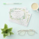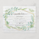 Vit drivvedbakgrund med vackra akvarell gröna salviafärgade blad och guld geometrisk ramfunktion på denna moderna bröllopsbrevpapperartikel. Del av en större samling med låg budget bröllopsinbjudningar, spara datum, svarsblanketter, etiketter och mer.