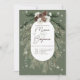 Den här designen har en rustik grönt gräs och pineconbukett på gräs gröntens bakgrund med vita blommor. Den accentueras med en vit gnistra övertäckning för att illustrera magin i de vackra vinterhelgdagarna. Perfekt till jul- eller vinterbröllop. Kortet är en del av den Rustic Grönt Gräs Winter Gnistra Bröllop Suite som skapats av enbart Farmhouse Press.