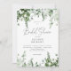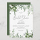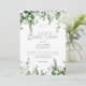 Inbjudningskort för möhippan är enkelt, elegant och romantiskt, med dess enkla grönska lövfall av mörk grönt vattenfärgsvivel och sage. Skapat av Farmhouse Press.