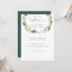 Rustik vattenfärgsfärgad grönt och guld löv inbjudningar till andningsbröllop med vita blommor med elegantens kalligraftext blandad med ett modernt typsnitt. Mallen är enkel att anpassa med din egen information. Kortets baksida är mörkens grönt som matchar löven i andedräkten.