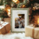 Rustik grönt-nödlidande helgdag-kort för mönster med 1 fotoplats